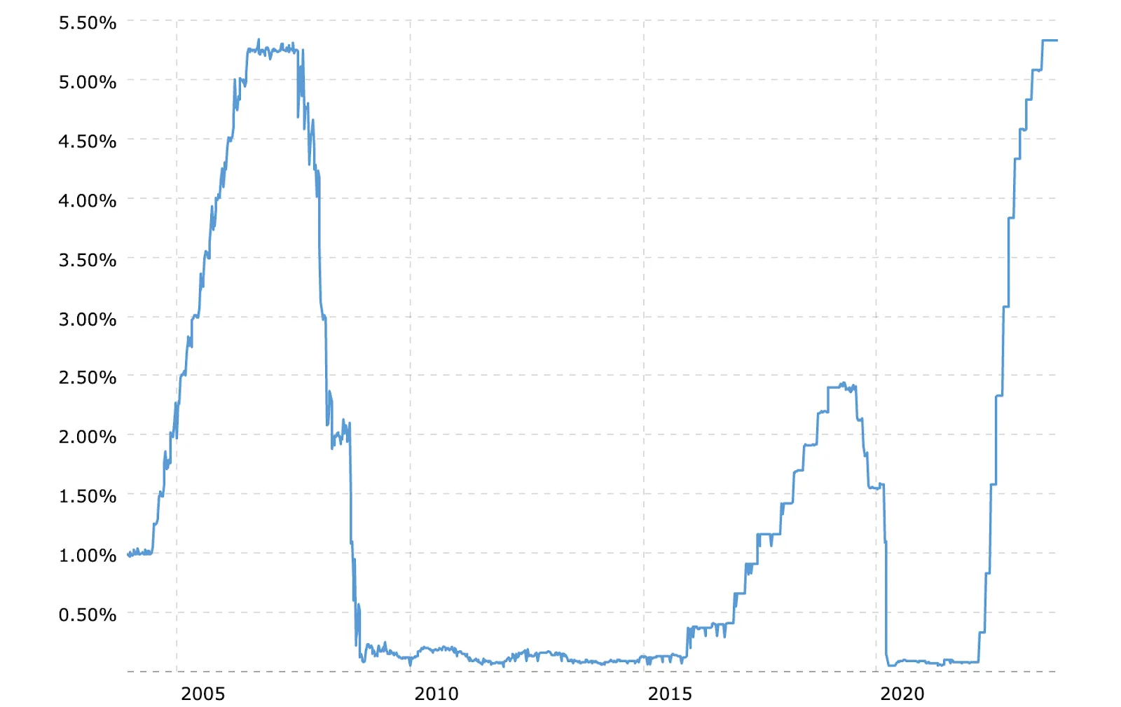 Federal funds rate – 20 year historical chart